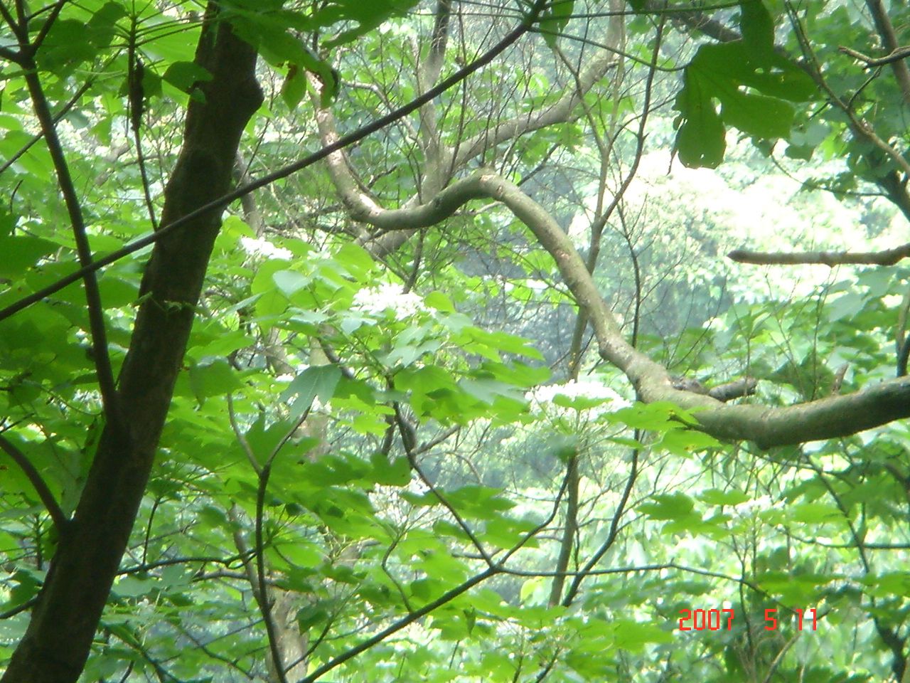 原本期待的五月雪早就掉光光,只剩下一片綠油油,走著走著朋友看見遠方還有一顆桐花正盛開著,問題是:哪是那個方向啊?人生地不熟的。只能邊走邊看邊碰運氣了。