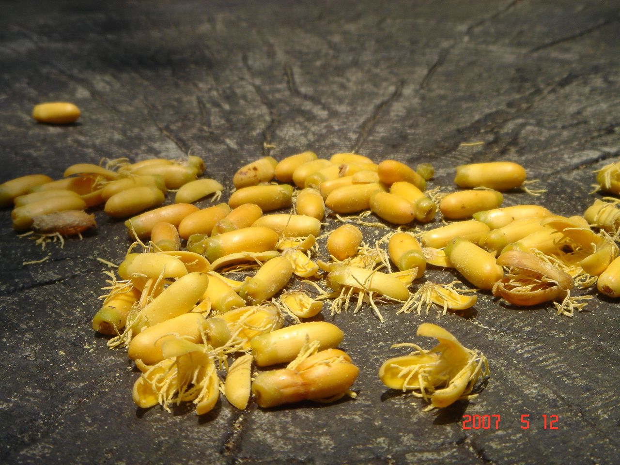散落一地的桐花、枯萎一地的桐花,標準的花開花謝!